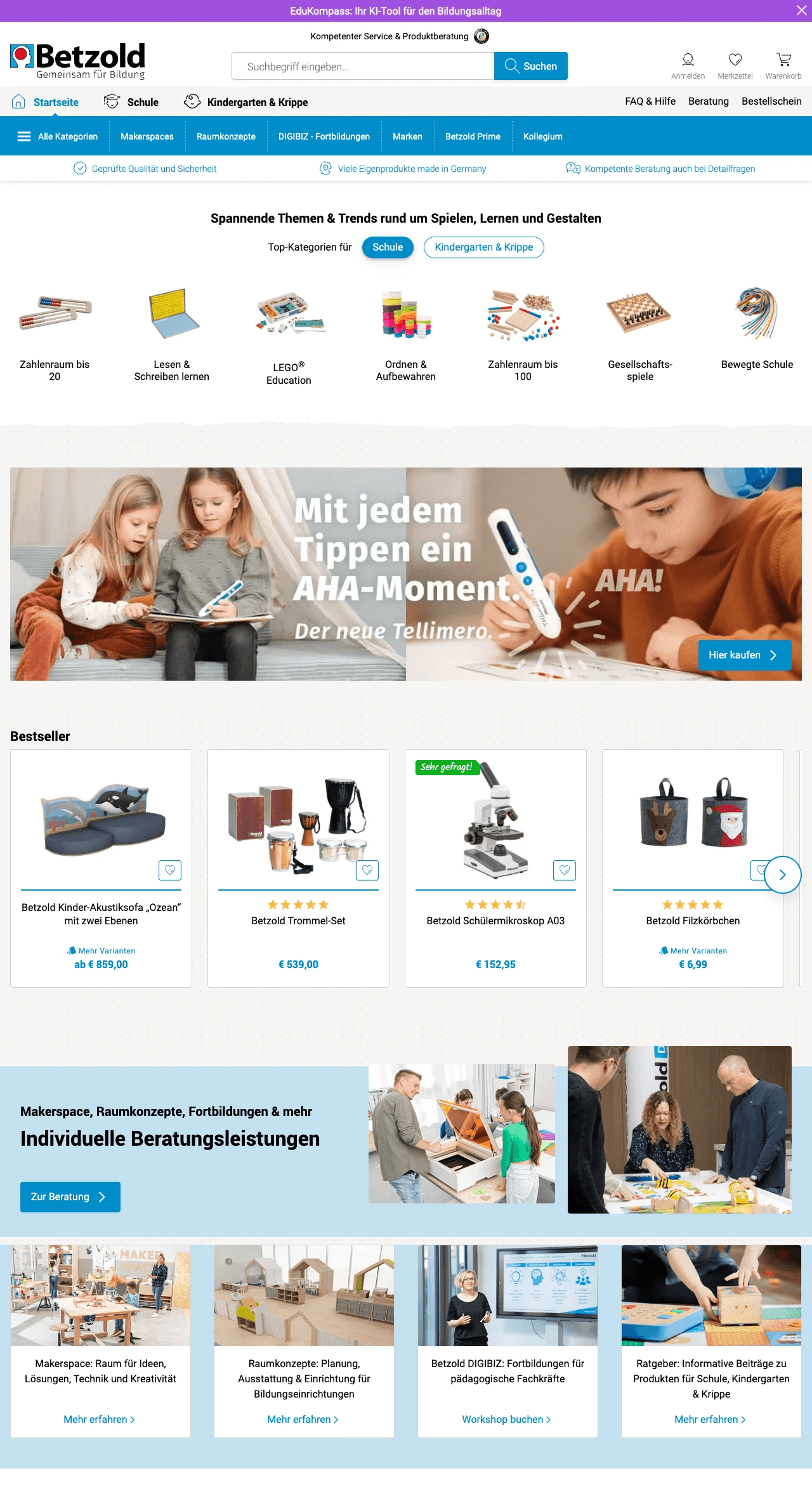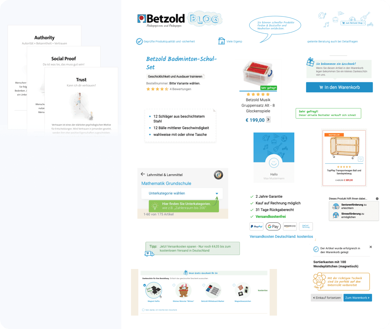 Es wurde ein personalisierter Shop-Bereich „Mein Betzold“ umgesetzt, der Nutzer nach einer kurzen Auswahl passende Kategorien und Inhalte anzeigt. Statt einer generischen Startseite bekommen sie direkt einen auf ihre Bedürfnisse zugeschnittenen Einstieg.