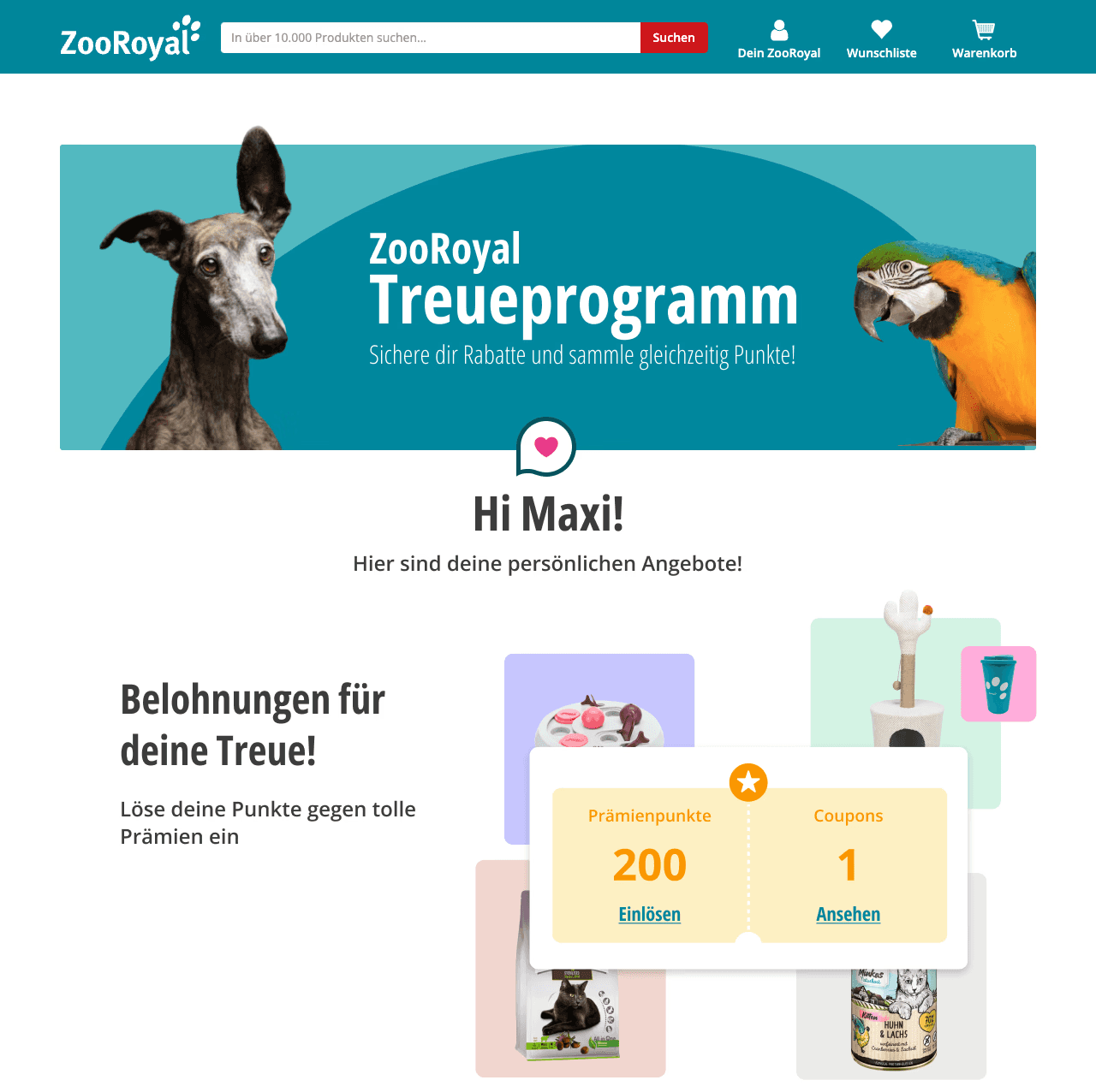 Es entstand ein konsistentes UX- und UI-Konzept für das Loyalty-Programm mit integriertem Tierprofil, nahtlos eingebettet in die bestehende Shoparchitektur.